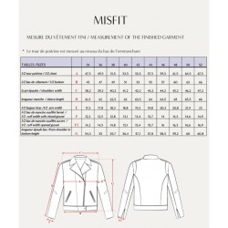 Le Patron Misfit grade du 34 au 52. Le tableau des mesures du vêtement fini est disponible dans les photos du produit.