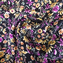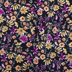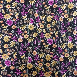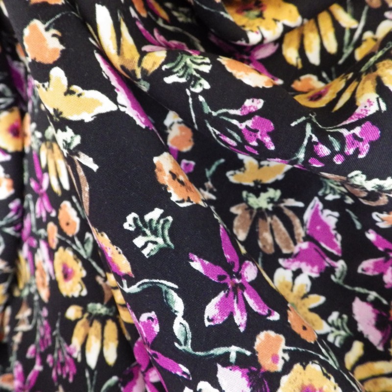 Tissu viscose très doux à porter, léger et fluide. Ce tissu viscose d'un joli imprimé à fleurs sur fond noir, vous apportera un très beau résultat à vos créations.