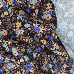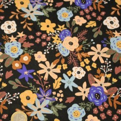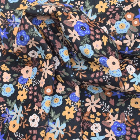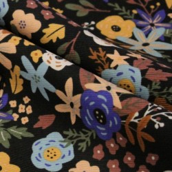 Tissu velours milleraies Babycord imprimé à petites fleurs . Ce tissu velours milleraies d'une très belle qualité et Oeko-tex sera parfait pour la réalisation de vêtements, bloomers, jupes, robes, tops…