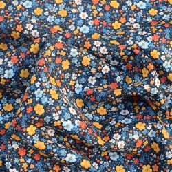 Apportez du caractère et de l’élégance à vos créations avec ce tissu en batiste 100% coton. Léger, fluide et délicatement transparent, il séduit par son fond noir profond sublimé par de jolis motifs floraux aux nuances orange et moutarde.