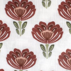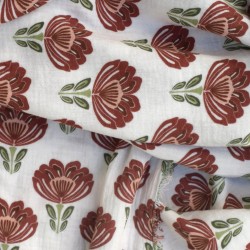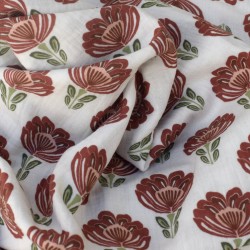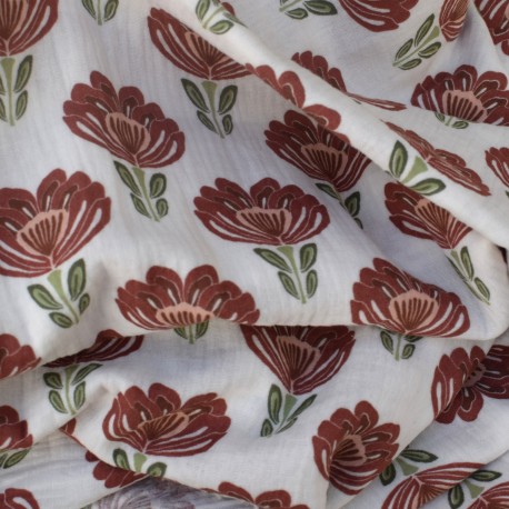 Tissu Double Gaze de Coton à Fleurs marron chocolat – Fond écru – Certifié Oeko-Tex