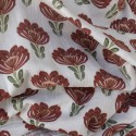 Tissu Double gaze de coton à fleurs marron chocolat- fond écru